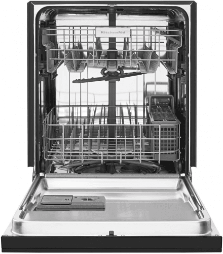 The KDFE104DSS, by KitchenAid, apparently auto-adjusts to an ideal cycle depending on how soiled your dishes are, with its load-sensing ProWash feature, while it shows an effort to wash with less noise, as suggested by its lower-than-average 46-dBa score (a rating that is also shared with several higher-end dishwashers).